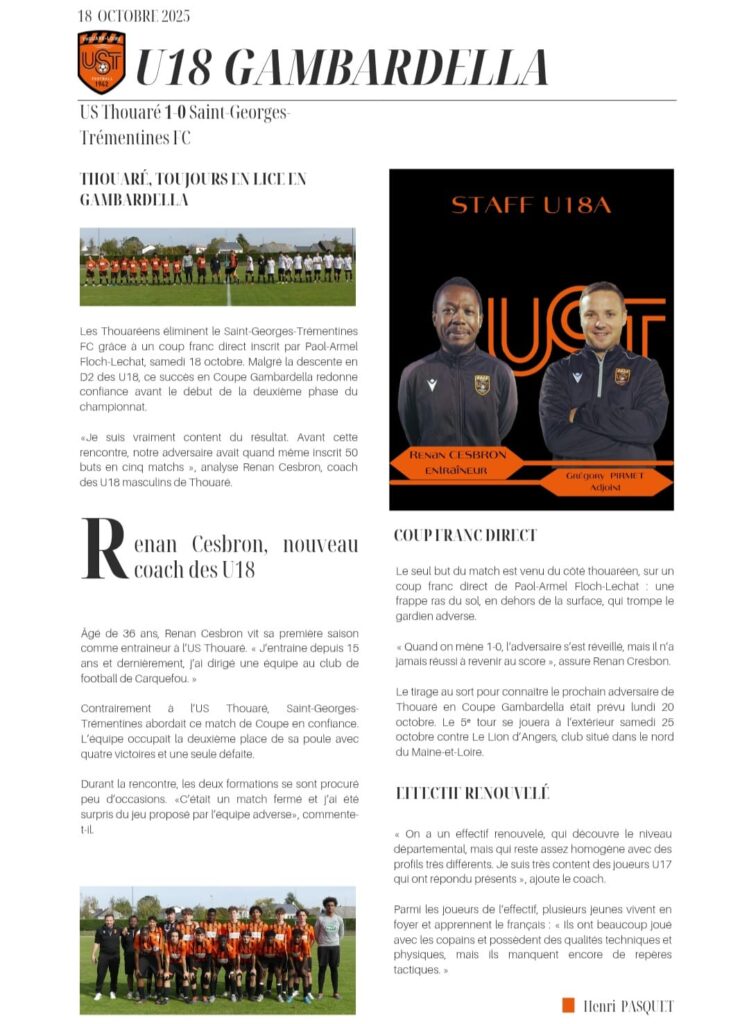 Nos U18 se qualifient pour le 4ème tour de la Coupe Gambardella !